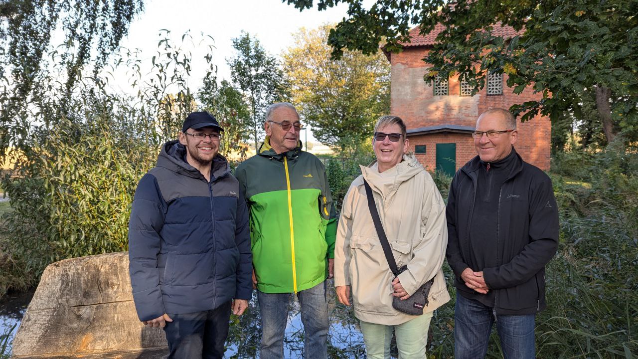 Dominik Klinke, Hans-Georg Tauchert und Bernd Melchner vom Interessenverein zur Erhaltung der Bledelner Rotten und Dr. Urte Kyas von der Bürgerstiftung Algermissen